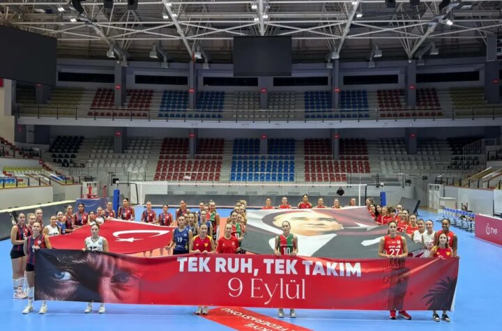 İzmir'in düşman işgalinden kurtuluşunun 103. yıl dönümü hasebiyle bayan voleybol ekipleri, 'Tek Ruh, Tek...