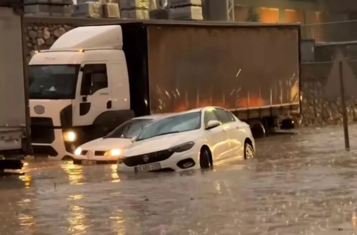 Manisa'nın Turgutlu ilçesinde akşam saatlerinde tesirli olan sağanak yağış, caddeleri göle çevirirken, birçok araç...