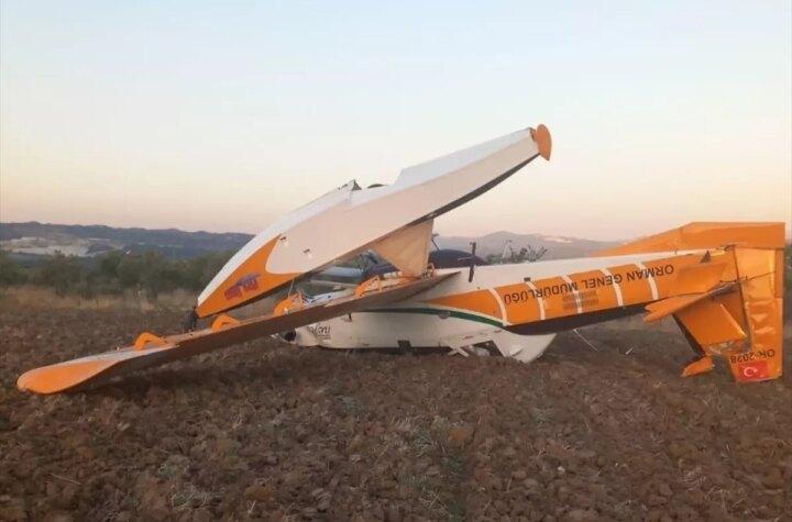 Aydın'daki orman yangınına müdahale için havalanan yangın söndürme uçağı, Muğla'nın Yatağan ilçesinde bir tarlaya...